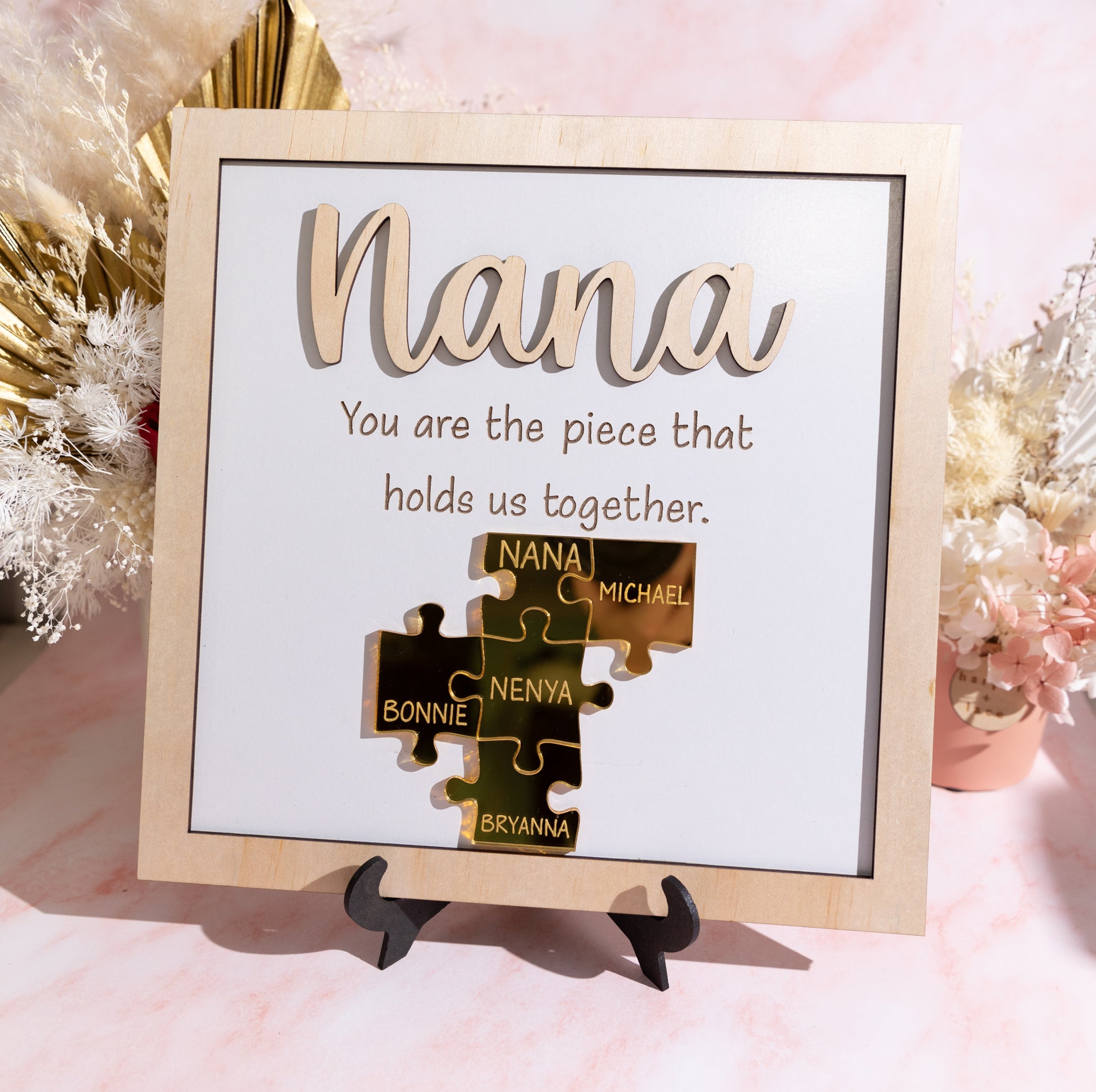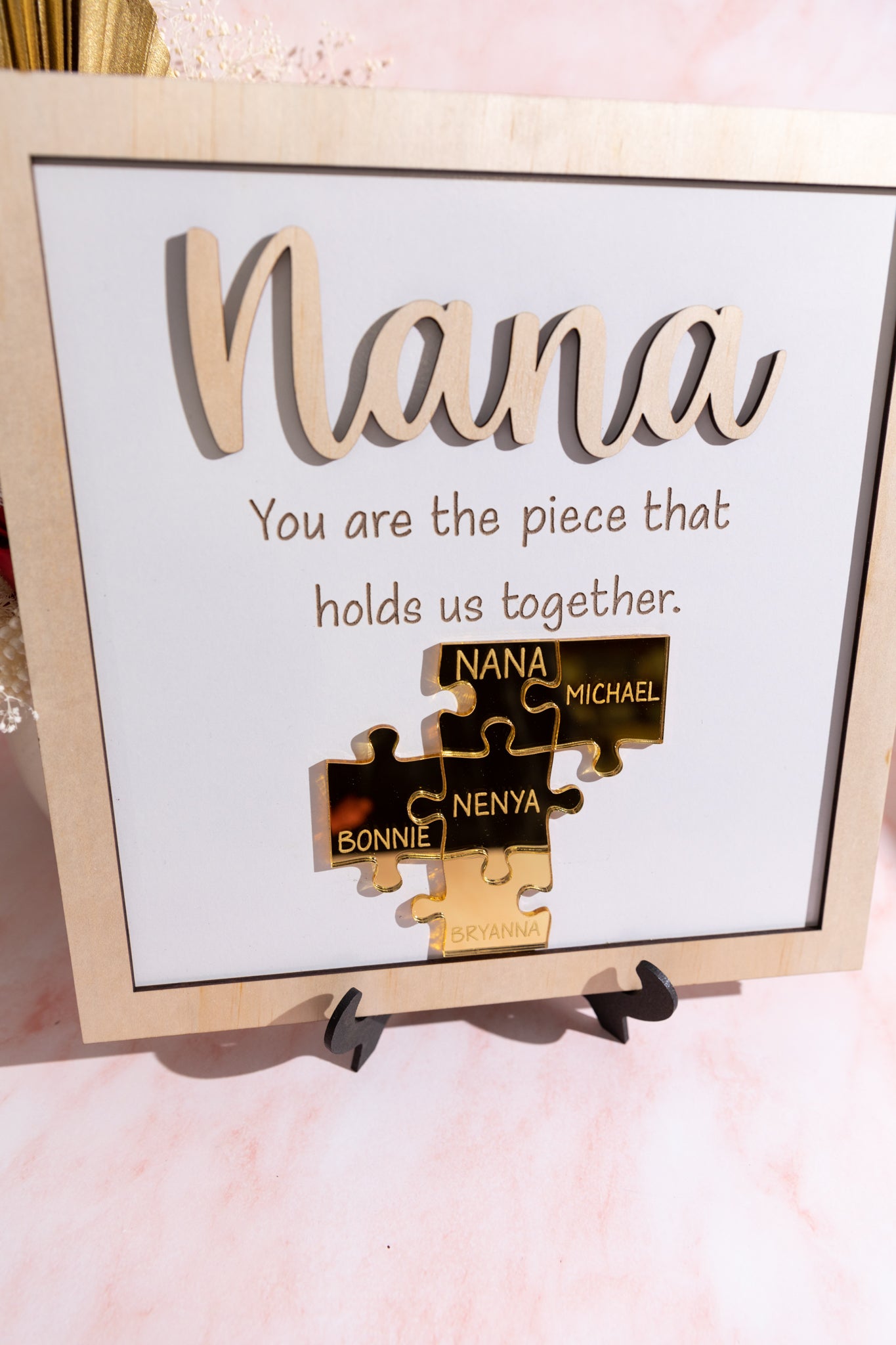 Beautiful framed piece for your loved ones. Personalised with names on puzzle pieces.